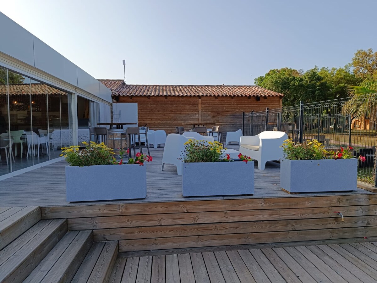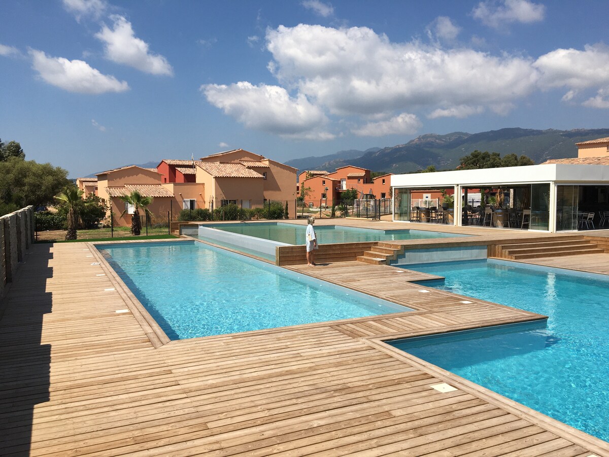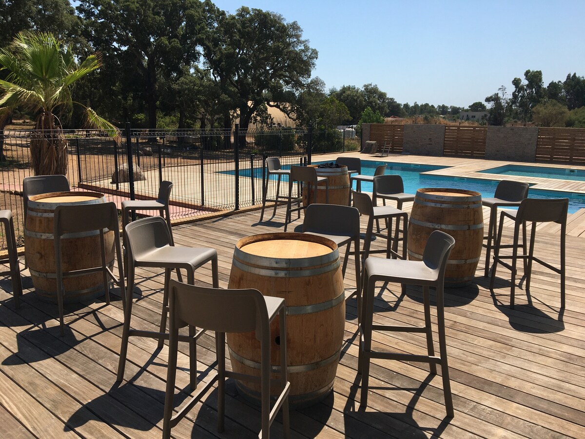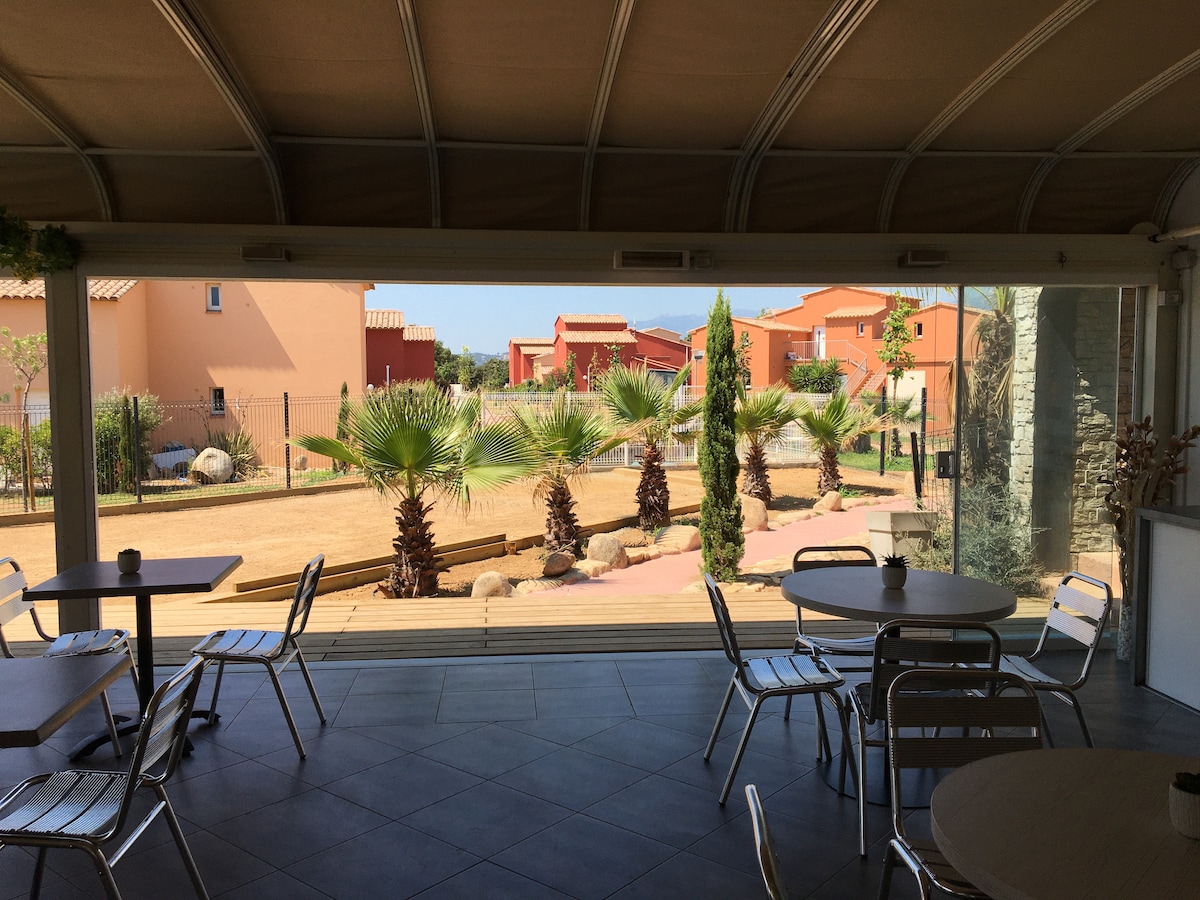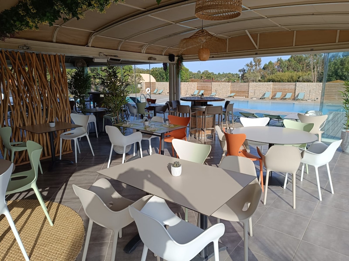 Découvrez les Hameaux de St Cyprien à Lecci ! Une adresse de choix entre mer et montagnes à 2,5km de la superbe Baie de St Cyprien. La résidence hôtelière vous promet un séjour paisible dans une ambiance familiale et conviviale. Profitez sur place d'un éventail de services, incluant 3 piscines chauffées, un bar, un snack pour des petits-déjeuners gourmands ainsi qu'un restaurant aux saveurs locales. Notre vaste parc boisé et notre parking privatif vous assurent confort et tranquillité.