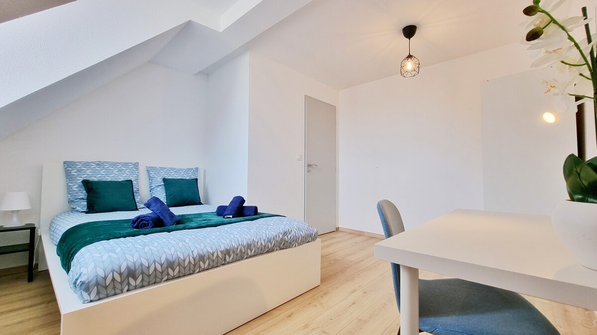 Goûtez l'élégance de ce logement, un appartement lumineux, rénové à neuf, pour un confort moderne.Le Triplex peut accueillir 10 personnes avec ses 5 chambres. Espace de vie spacieux et chaleureux pour un cocon de bien-être après une journée trépidante.Profitez de cette expérience unique, pensée pour votre bonheur. À vivre sans tarder !Convient parfaitement pour un voyage touristique ou professionnel.