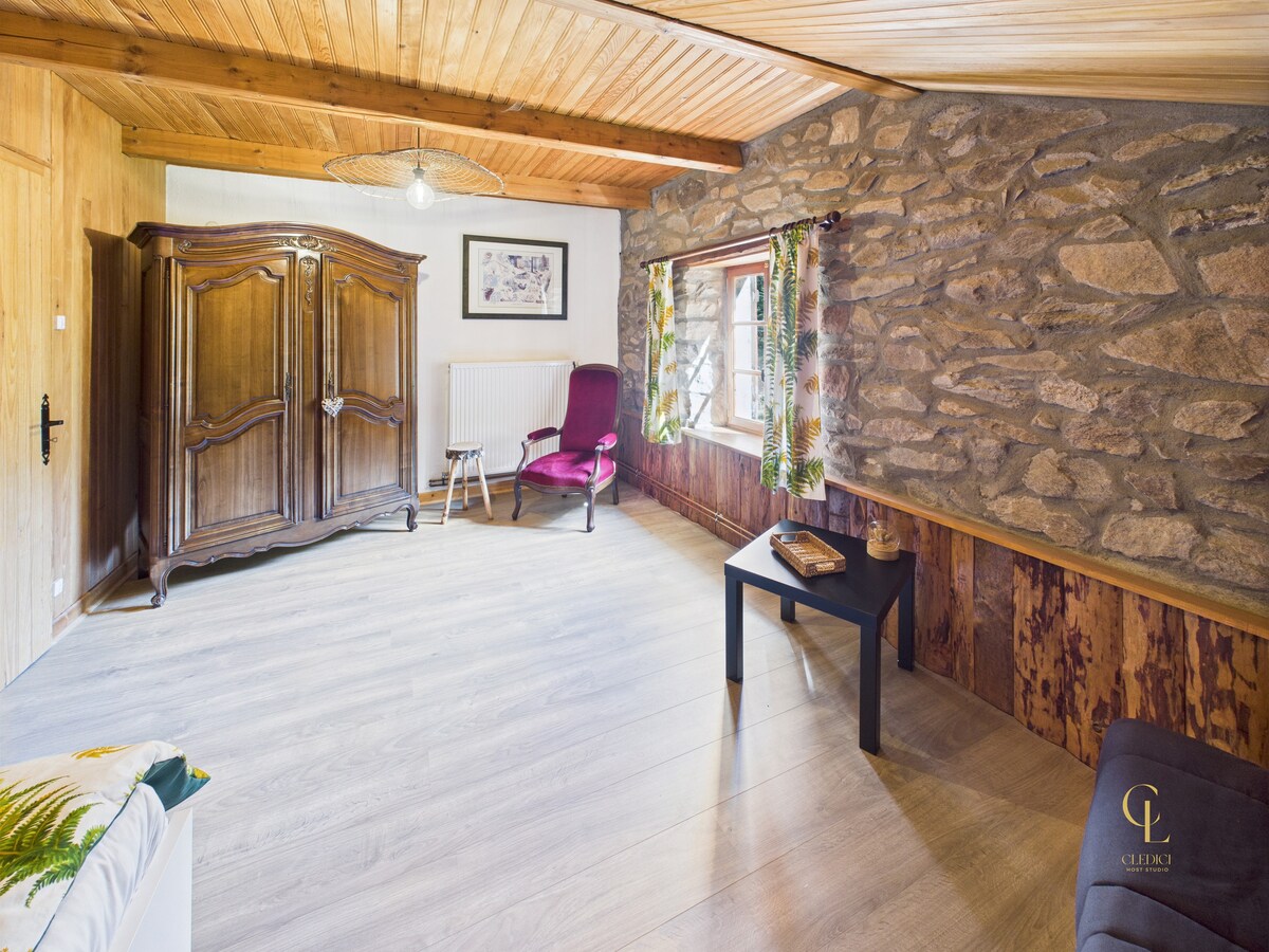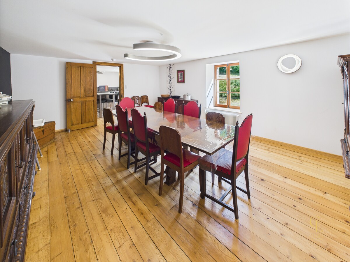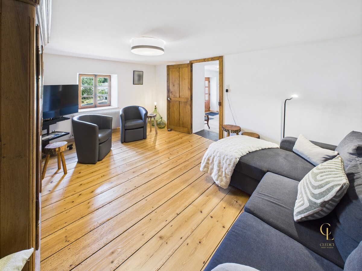 Appartement spacieux de 120 m² dans une ancienne ferme de 1819, au calme avec vue panoramique sur Anould et la vallée de Saint-Dié. 3 grandes chambres (15 à 20 m²), terrain de 1000 m² non clôturé. À 15 min de Gérardmer et des stations de ski. Idéal pour nature, détente et déconnexion. Étang en vue (accès interdit). Authentique et paisible, parfait pour un séjour ressourçant dans les Vosges.