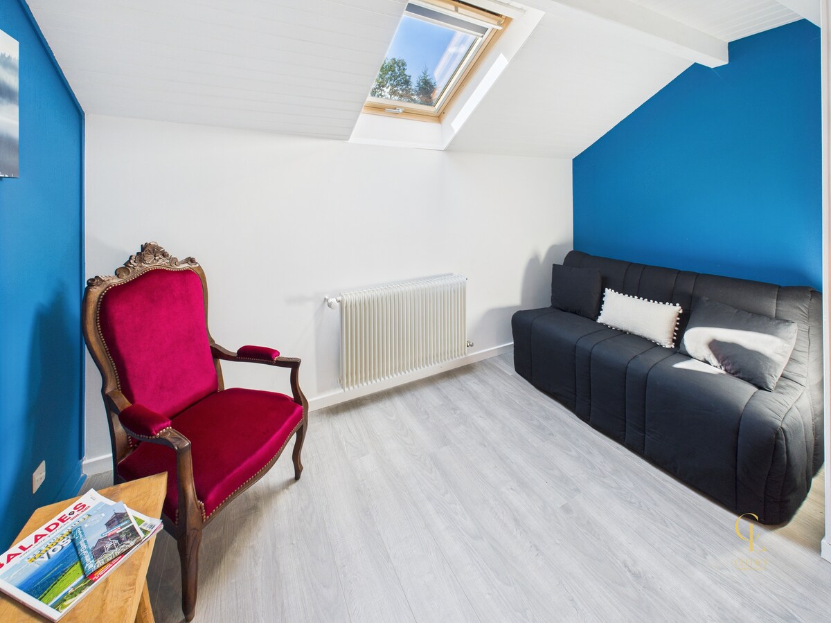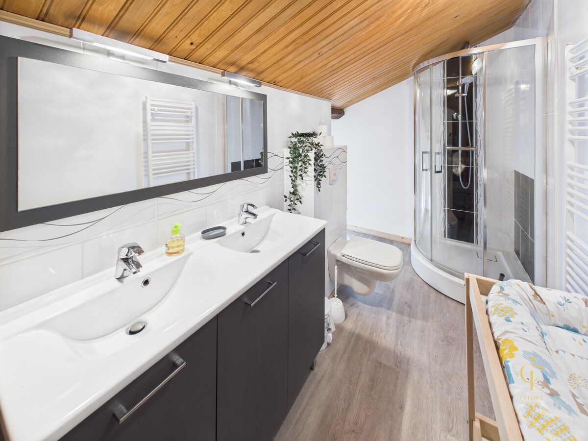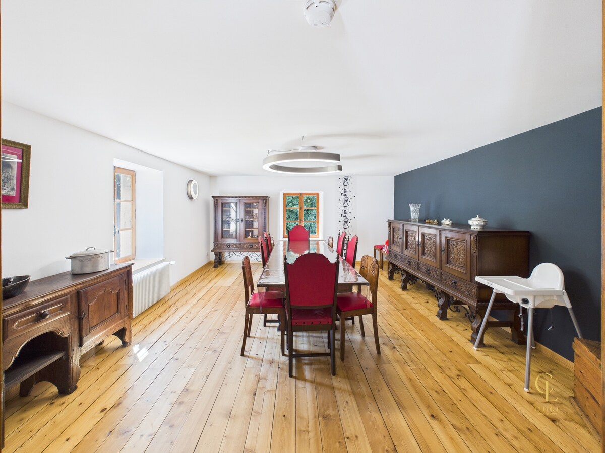 Appartement spacieux de 120 m² dans une ancienne ferme de 1819, au calme avec vue panoramique sur Anould et la vallée de Saint-Dié. 3 grandes chambres (15 à 20 m²), terrain de 1000 m² non clôturé. À 15 min de Gérardmer et des stations de ski. Idéal pour nature, détente et déconnexion. Étang en vue (accès interdit). Authentique et paisible, parfait pour un séjour ressourçant dans les Vosges.