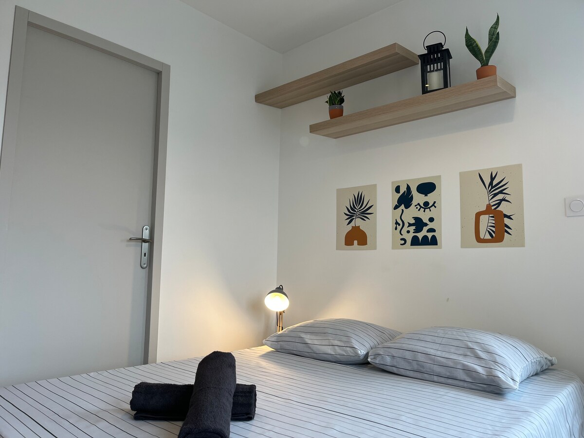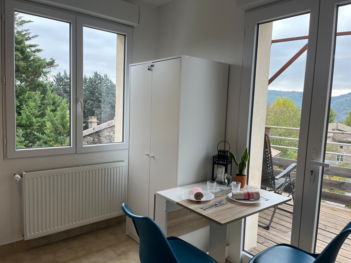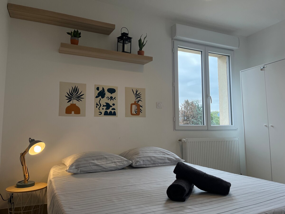 20 m² studio on the 2nd floor, perfect for 2 guests. It features a terrace with mountain and vineyard views, a fully equipped kitchen, a workspace, washing machine and dryer. Nestled in a quiet, green neighborhood, it’s the ideal place to relax and recharge, with free parking available on site.