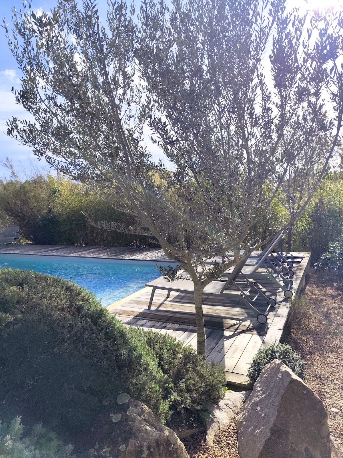 Villa de plain-pied de 120 m² à Conca, climatisée, avec jardin et piscine privée. Idéale pour 6 voyageurs: 3 chambres, 1 bureau avec canapé-lit et 2 salles d’eau. Cuisine entièrement équipée, espace extérieur convivial avec plancha et barbecue, parking dans le jardin, linge fourni, wifi. À proximité de Sainte-Lucie, des plages de Pinarello, de Cavu et des incontournables Porto-Vecchio, Bonifacio, L’Ospédale.