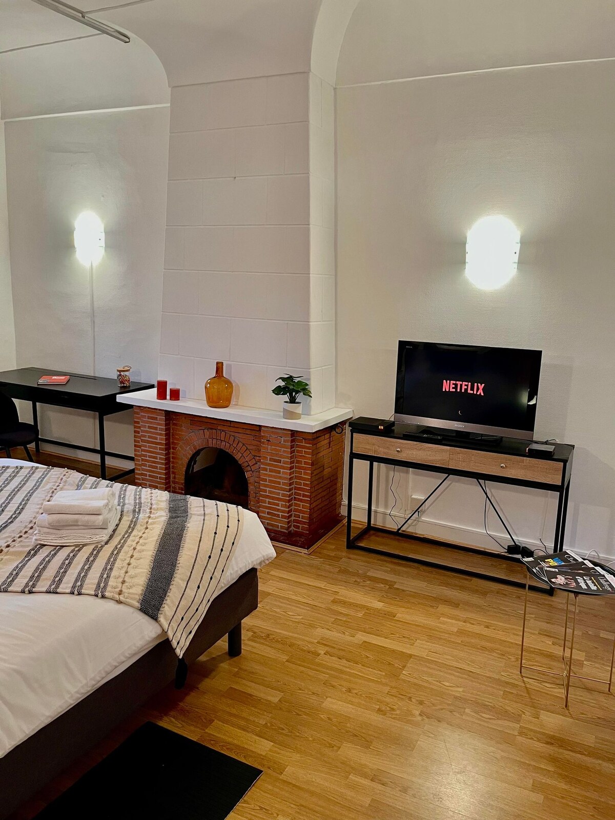 Séjournez au cœur du Vieux Rouen dans un T1 plein de charme, niché dans un immeuble classé et sécurisé. Lumineux, confortable et parfaitement équipé, il offre une literie haut de gamme, une cuisine moderne, la fibre, Netflix et un espace de travail. À deux pas du Gros Horloge, de la place du Vieux Marché et de la Cathédrale.