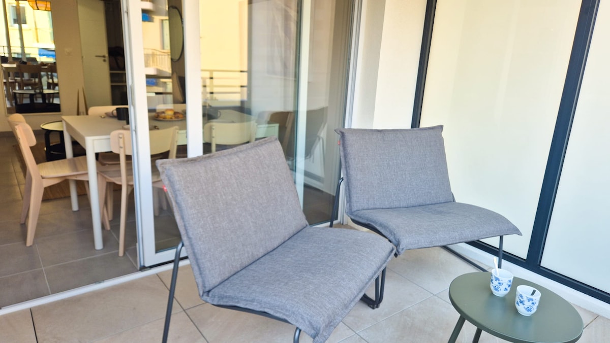 Bienvenue dans ce superbe T3 neuf, moderne et entièrement équipé, situé dans une résidence récente et sécurisée. Idéal pour les familles ou séjours professionnels, il peut accueillir jusqu’à 6 personnes grâce à ses deux chambres confortables et son canapé-lit. Profitez de la climatisation, d’un balcon agréable et d’une place de parking privée en garage sécurisé accessible par ascenseur.
