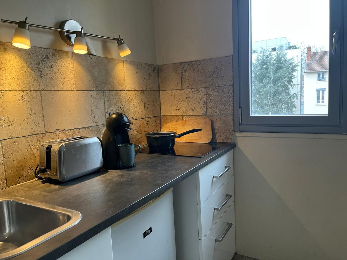 Le Laurier Urbain is a warm and inviting 30 m² studio, ideal for two guests. With its cosy alcove, bright living space and private parking, it offers a comfortable stay in the heart of Villeurbanne. Located on the 3rd floor with elevator, it provides a calm atmosphere and quick access to Lyon. Perfect for both leisure and business stays.