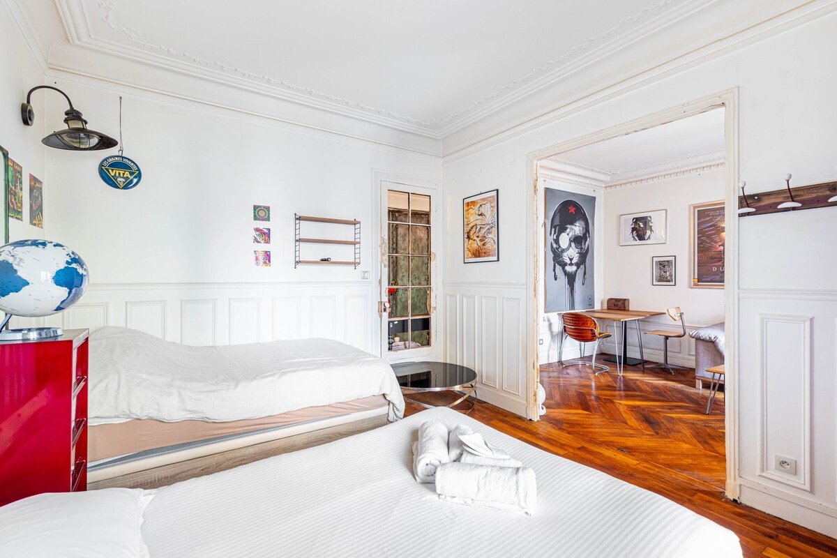 Experience Paris from Oasis 15e, a 5-star apartment for 4 guests, cosy and stylish. Comfy bedroom, fully equipped kitchen, and modern bathroom offer premium comfort. Relax in the connected living room with TV and Wi-Fi, or explore the Eiffel Tower, Parc André Citroën, and the lively 15th district, on foot or by metro. A chic, central, and relaxing stay, perfect for friends or family.